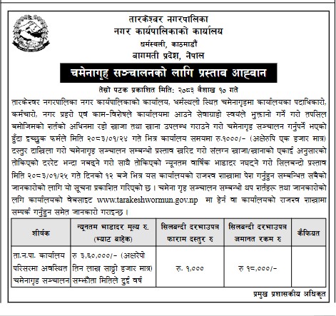 चेमेनागृह संचालनका लागि प्रस्ताव आव्ह्वान